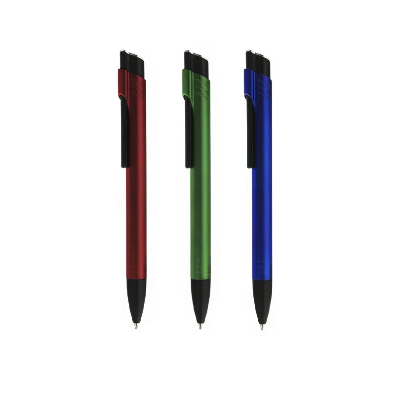 Bolígrafo plástico retráctil con cuerpo sólido.