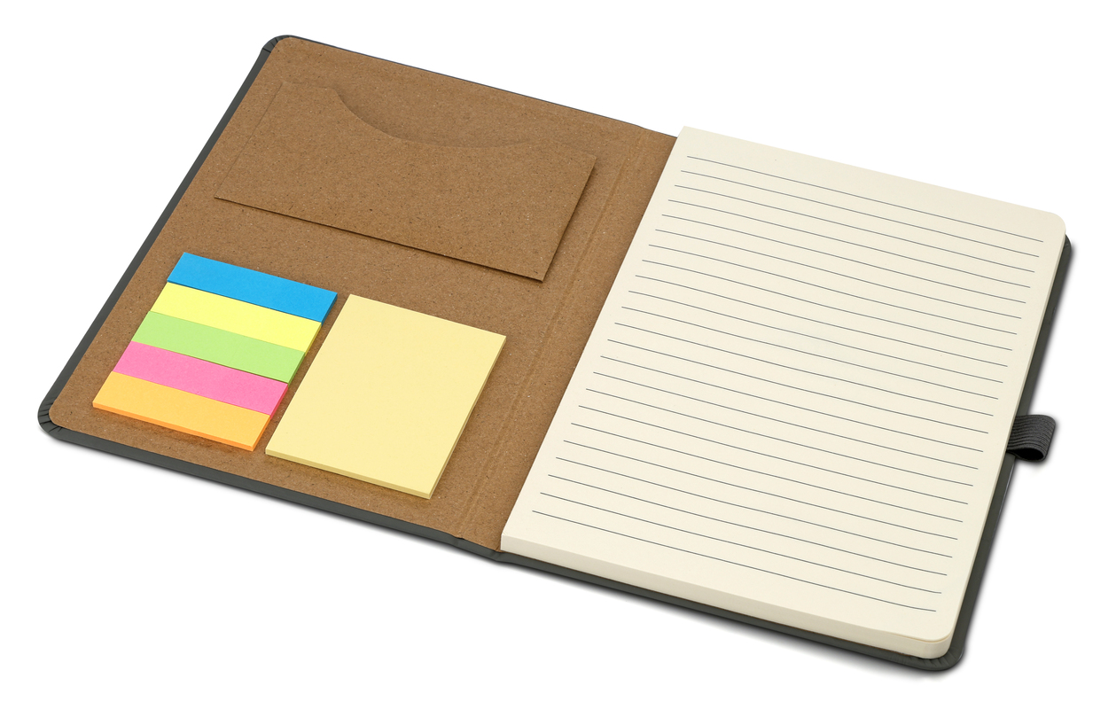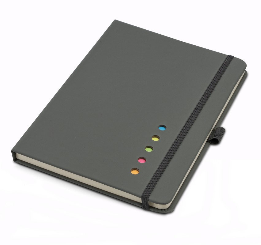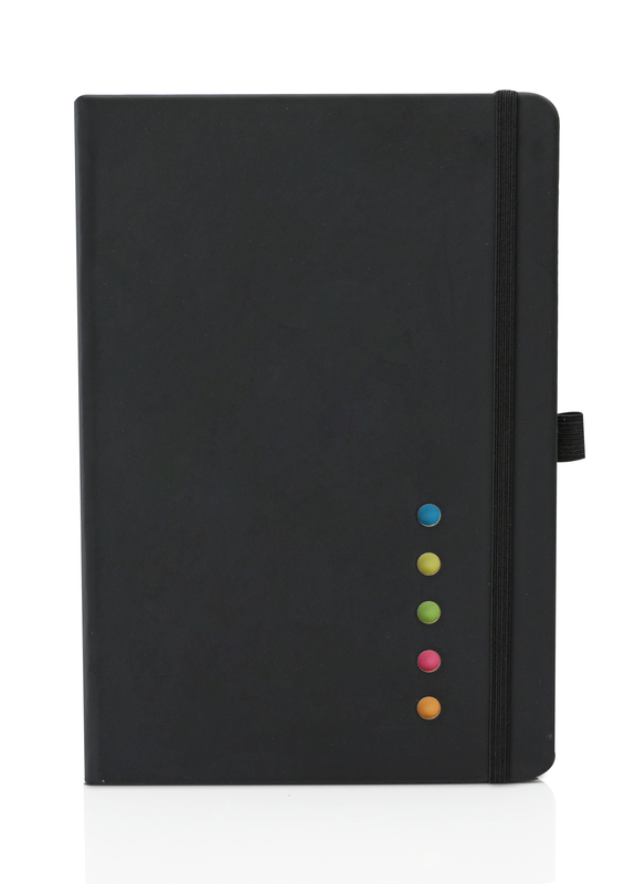 Con banda elástica de sujeción al tono y presilla porta bolígrafo de 15mm.