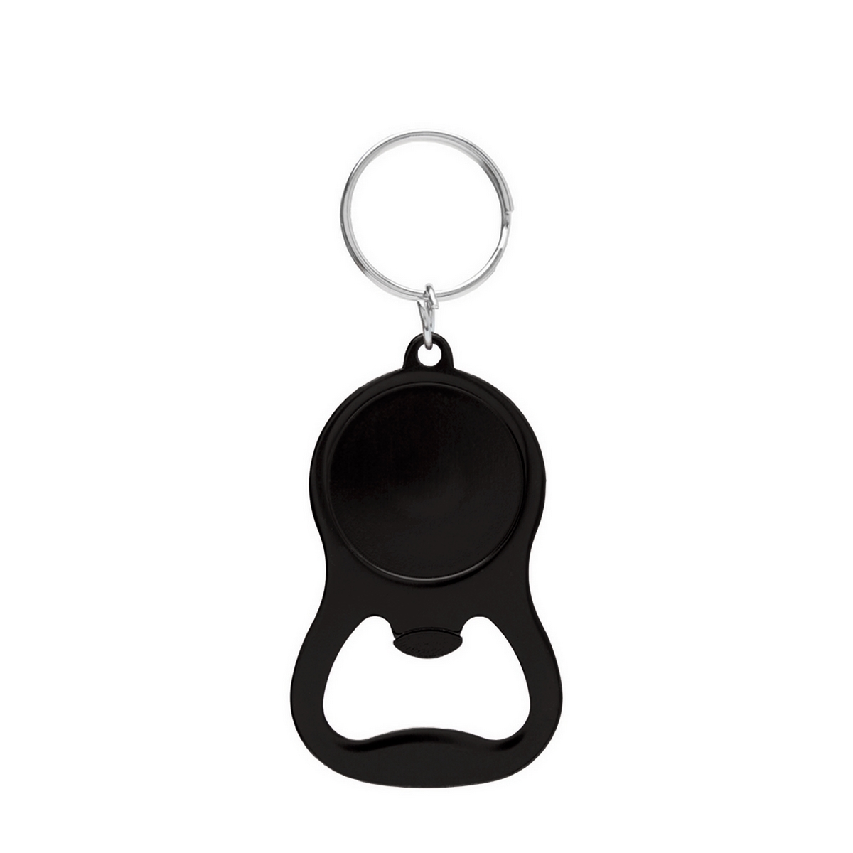 Llavero abridor tapa corona, metálico. Medidas: 4 x 6,5 x 0,3 cm. (anillo de 25 mm de diámetro). Tahg