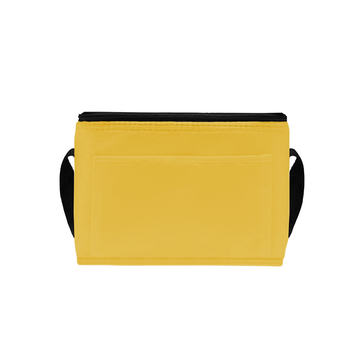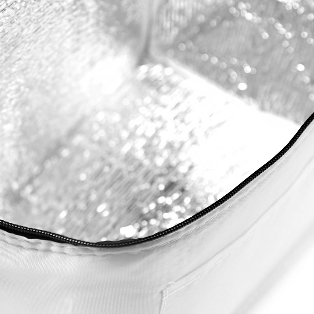 Realizado en su exterior en polyester 210T. Interior en aluminio y PE Foam 2mm. Tiras para hombro. Compartimiento principal superior. Bolsillo frontal. Medidas: 20,3 x 15,2 x 15,2 cm. Capacidad 5 Lts. Tahg.