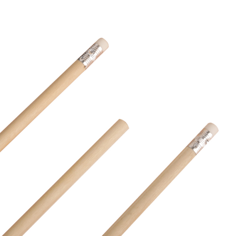 Lápiz negro con goma. Realizado en madera con detalle de aluminio en reborde de goma. Material de la goma: Caucho. Punta sin preafilar. Medidas: 189 mm x 0,8 mm. Mina: 2mm. Tahg