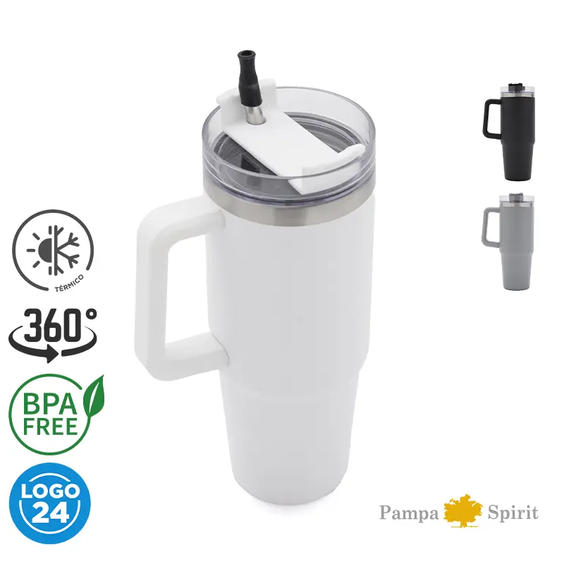 Jarro de doble pared con capacidad 887ml. Está confeccionado en acero inoxidable 304 en su interior, y su exterior en acero inoxidable esmaltado. Tapa realizada en ABS y PP, con sorbete incluido de silicona y acero inoxidable. Ideal para uso diario. El producto viene en una bolsa de PLA 100% compostable dentro de una Gift Box confeccionada en cartulina Kraft ¡personalizala con un mensaje especial! Pampa Spirit. LOGO24: Producto disponible para el servicio de logueo en 24hs, respetando unidades mín. de logueo y 200 unidades máx. Consultar términos del servicio.