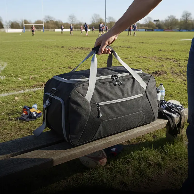 Bolso confeccionado en 168D nylon, ideal para tus actividades deportivas o viajes. Cuenta con un compartimiento principal amplio y un bolsillo frontal con cierre para objetos mas pequeños que necesites a mano. Además, tiene dos bolsillos laterales, uno de ellos con cierre, diseñado para guardar el calzado sin ensuciar le resto de tus pertenencias, y el otro, con red. Posee manijas y correa regulable, para llevarlo de la forma que te resulte más cómoda. Capacidad: 65L. Slazenger.