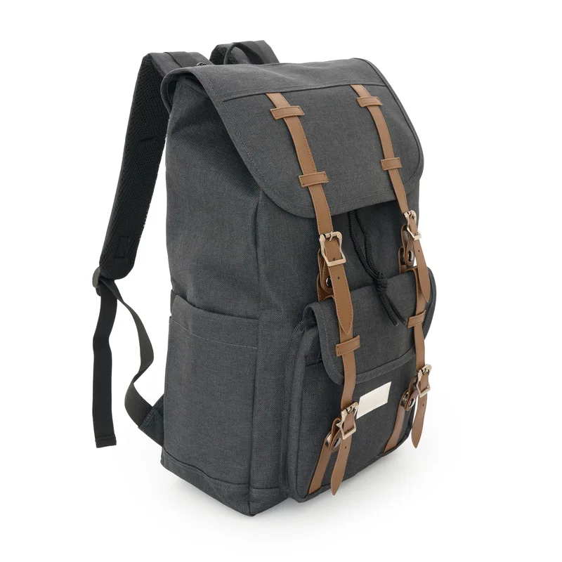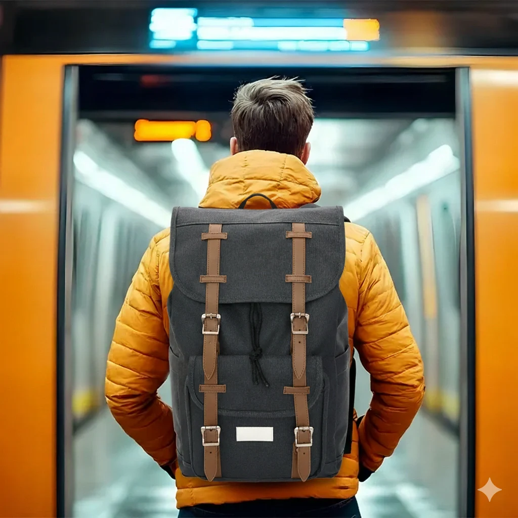 Mochila urbana con correas ajustables Hecha de poliéster y cuero PU. Cuenta con cierre con solapa y hebillas, tiras acolchadas ajustables, bolsillos frontales y capacidad de 18 litros. Es ideal para llevar tus pertenencias al trabajo, universidad o salidas diarias con comodidad. Us Basic