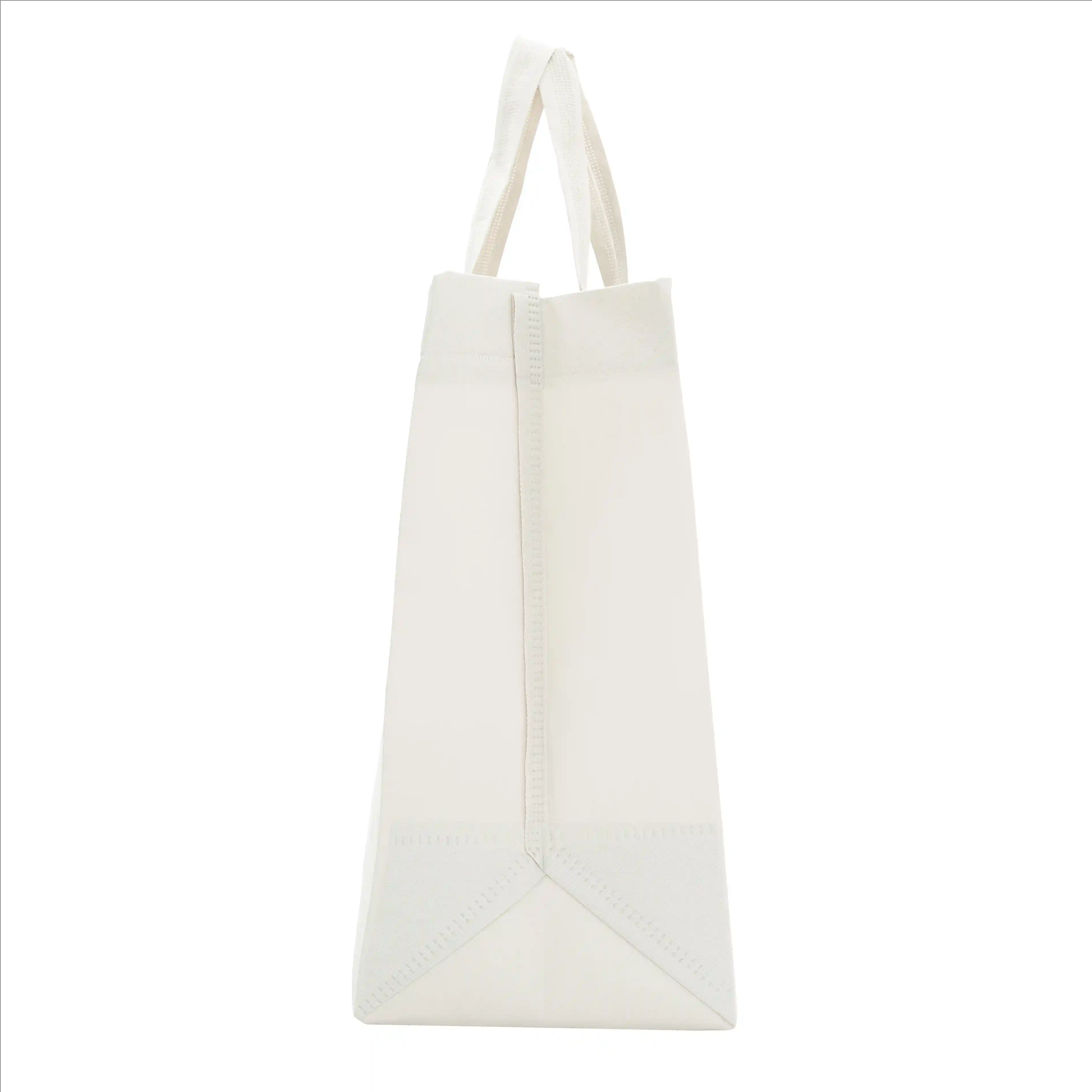 Bolsa reutilizable con fuelle lateral y base. Fabricada en friselina. Cuenta con manija tipo correa. Ideal para bolsos, mochilas o kits promocionales completos. Su tamaño y estructura permiten transportar productos más grandes y pesados. Dimensiones: Alto: 36cm, Ancho: 40cm, Fuelle Base: 18cm, Fuelle Lateral: 18cm. Tahg.