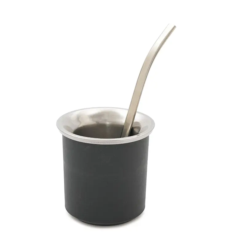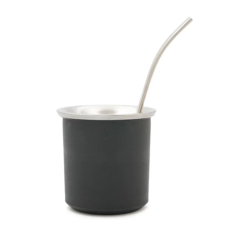 Mate práctico de acero inoxidable con doble pared térmica. Ideal para disfrutar de un mate cómodo y duradero en cualquier lugar. Incluye bombilla de acero inoxidable con resorte. Tahg.
