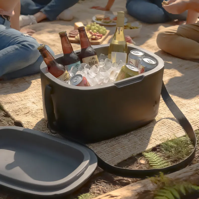 Conservadora rígida de 11.5 litros hecha de PE, EPS y PP. Cuenta con una tapa superior removible, correas resistentes y ganchos en color negro, lo que la hace robusta y funcional para transportar bebidas o alimentos. Es ideal para actividades al aire libre como picnic, camping, playa o días de campo, manteniendo la temperatura de los productos durante más tiempo. Capacidad: 11.5 litros Hydra Go.