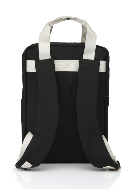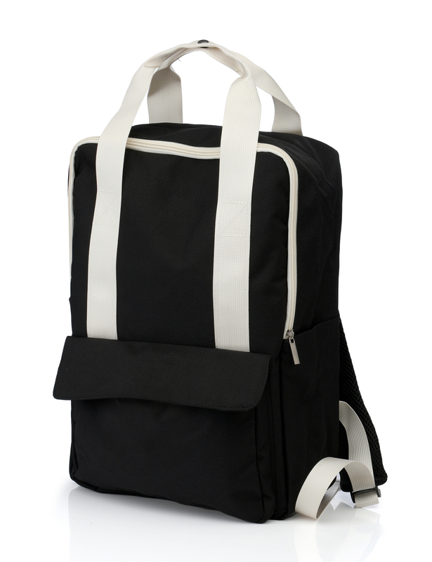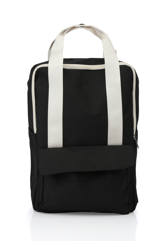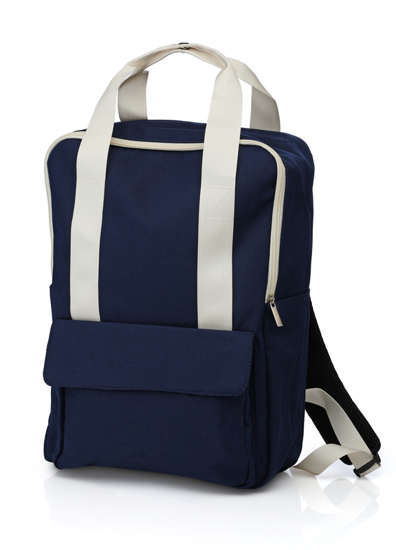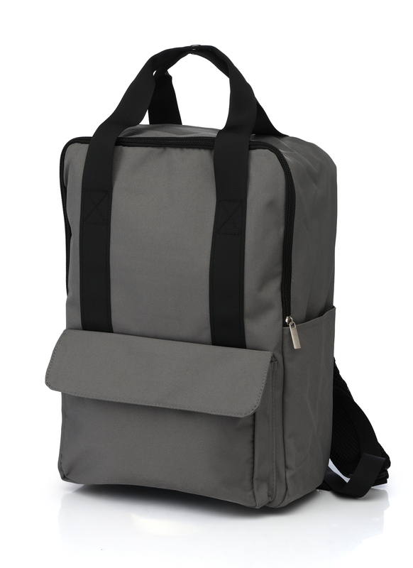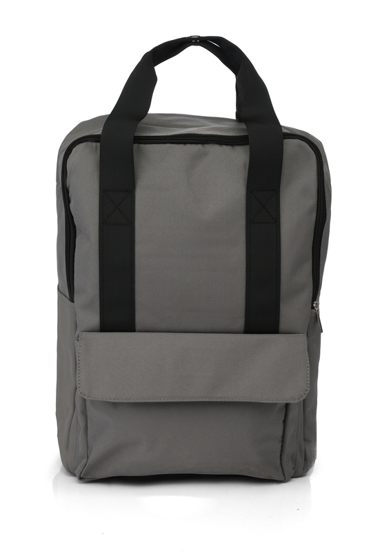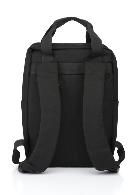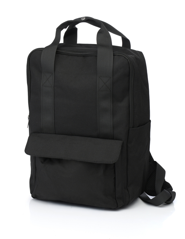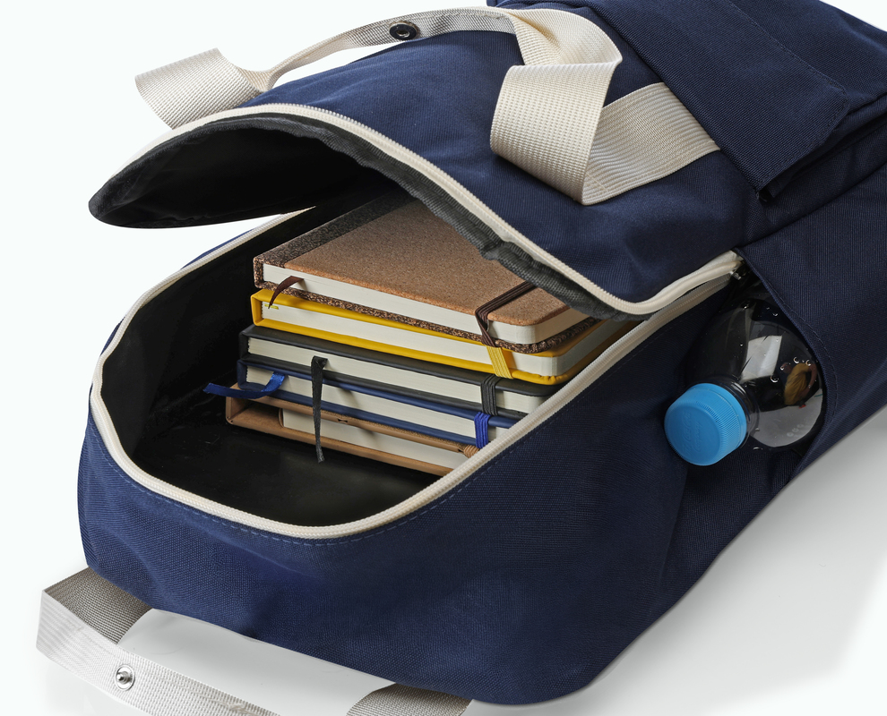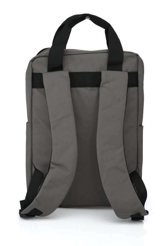 Posee un cierre principal, bolsillo frontal con cierre ajustable con Velcro, y dos bolsillos laterales para varios.
