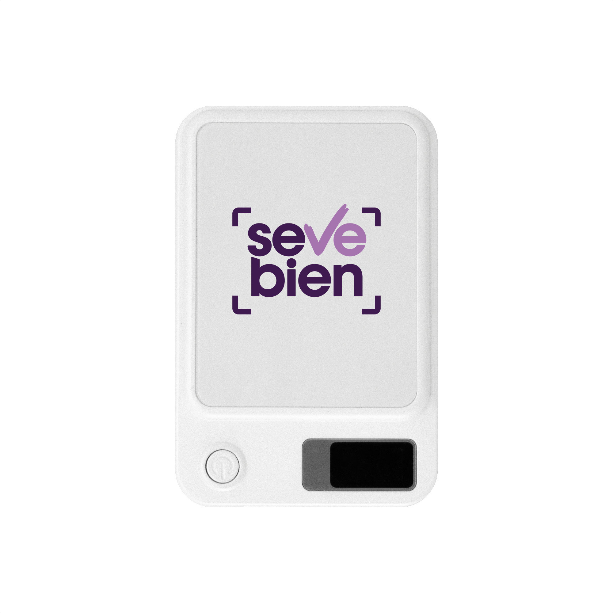 Mantente conectado en todo momento.Power bank inalámbrico con aro magnético. Color blanco mate y brillante en la parte delantera. Posee indicador digital de capacidad. Entrada y salida: 5V 2A. Con 1 puerto de carga y función inalámbrica magnética. Potencia inalámbrica: 5W. Cable de carga USB - C en color blanco. Incluye anillo magnético para pegar en la parte trasera del teléfono móvil. Medidas: 6,4 x 9,8 x 1,5 cm. Capacidad: 5000 mAh. Materiales: Plástico ABS. Presentación: en caja de regalo Kraft.