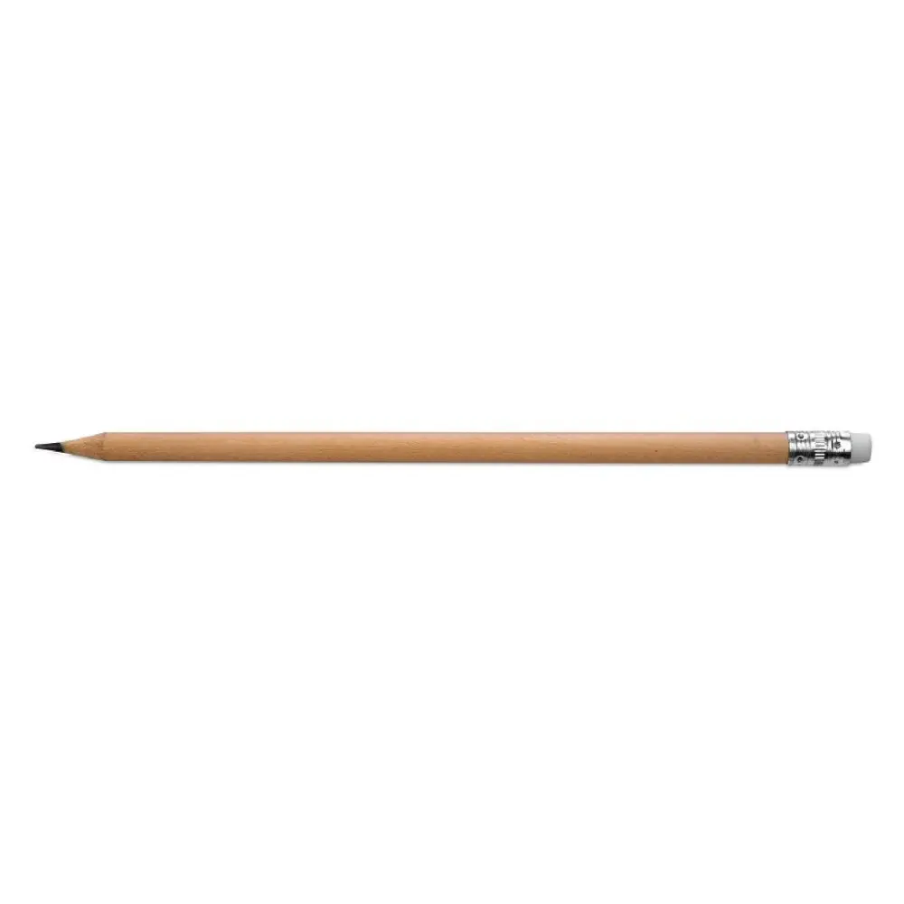 Cuerpo redondo de madera natural con goma de borrar en el extremo.